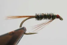 The New Zealand rig is based on a slightly different principle. Here you fish a large fly like a cicada or some other tempting morsel, trailed by a small nymph. The top fly is often fished sub surface, and sometimes it's actually very heavy, to an extent that makes it difficult to cast. This particular rig is often called a Tongariro Nymph Rig, named after its birthplace on the Tongariro River. This particular rig uses a normal yarn indicator, followed by a very heavy nymph (very!) aptly called the Bomb, followed by another smaller nymph.