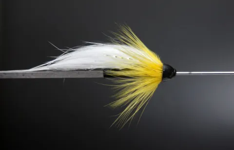 The classic Black Ghost streamer tied as a salmon fly on a tube