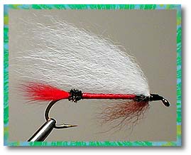 | THROAT | WHITE FOXTAIL TO BEND OF HOOK, THENRED FOXTAIL TIED SHORT, BEARD-STYLE |