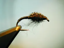 The Darth Vader Nymph is a generic nymph pattern, created with no particular animal in mind, but with the purpose of giving it a nymphy profile, making it sink readily and be easy to tie. Eventually it did wind up being very much like a black stonefly nymph due to the colour and the clearly segmented rear body.