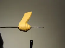 This simple pattern by Russian fly tyer Dmitri Tseliaritski is another example of his ability to make an almost perfect imitation using simple materials and methods. This is a floating snail made from foam, and it requires very little apart from that. Hook, thread, glue, mono, some markers and a final layer of LCR and you have a fine imitation. Sure, this fly will ride upright or tilted in the surface where many snails actually hang with the house down, inverted on the underside of the water, but it will work, presenting the fish with the right silhouette.