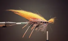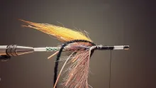 Danish Allan Nørskov Johansen ties a large, gaudy and semi-crazy fly with lots of hair, flash and rubber legs for stream fishing at night for sea run brown trout.