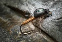 Tutus are tied with natural silk ribbon that’s made from actual silkworms, as opposed to the semi-synthetic stuff that’s made from cellulose extracted from bamboo or wood fibres. Most commercially available silk ribbons are made with artificial silk, and they are fine for tying soft body pupa patterns and for little fish imitations like my Silky Bugger. Real silk ribbons have much finer fibres which allows them to imitate the legs on smaller imitations