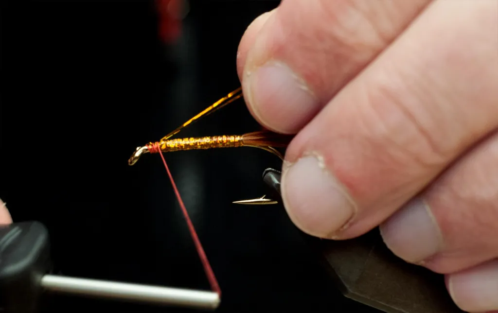 Tie down the flash, leaving the butts pointing backwards over the shank