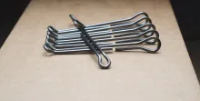 Many cotter pins are almost ready-to-use intruder shanks. Some are on the rough side and some too heavy in the wire, but those that are well made, polished and suitably thin can be used right out of the box. The disadvantage of the cotter pins is the shape of the wire, which is flattened vertically to create a round shape when the two legs are close together. This is fine for the tying, but not as great for the eye, which gets a treacherous inner edge that could potentially cut your tippet. But the best finished pins are nicely rounded and don't pose this risk. You will of course need straight pins (not the wavy ones) and not watchmaker's pins, which have a very special shape, not suited for this purpose.